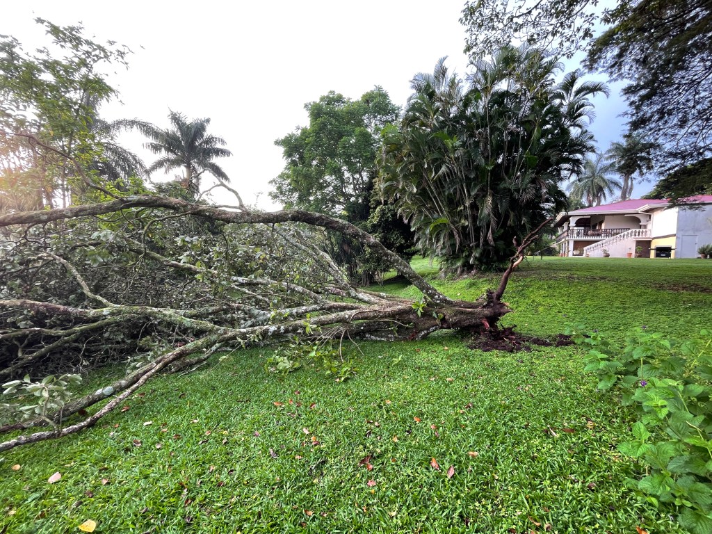 Last night, Angela and I were in the house watching the horrific aftermath of another school shooting. This time it was in Uvalde, Texas, a town we’ve been through many times–a beautiful little town. I was just heartbroken and horrified by all that we were seeing on television, and then we heard an incredibly loud noise from outside. We went to investigate and we discovered that our nance tree had fallen. A nance is a fruit many of you don’t know. Costa Ricans love this fruit. It has a very distinct smell, and they use it and make many things out of it. This was the only one we had on the property and it is now gone. It is fallen.