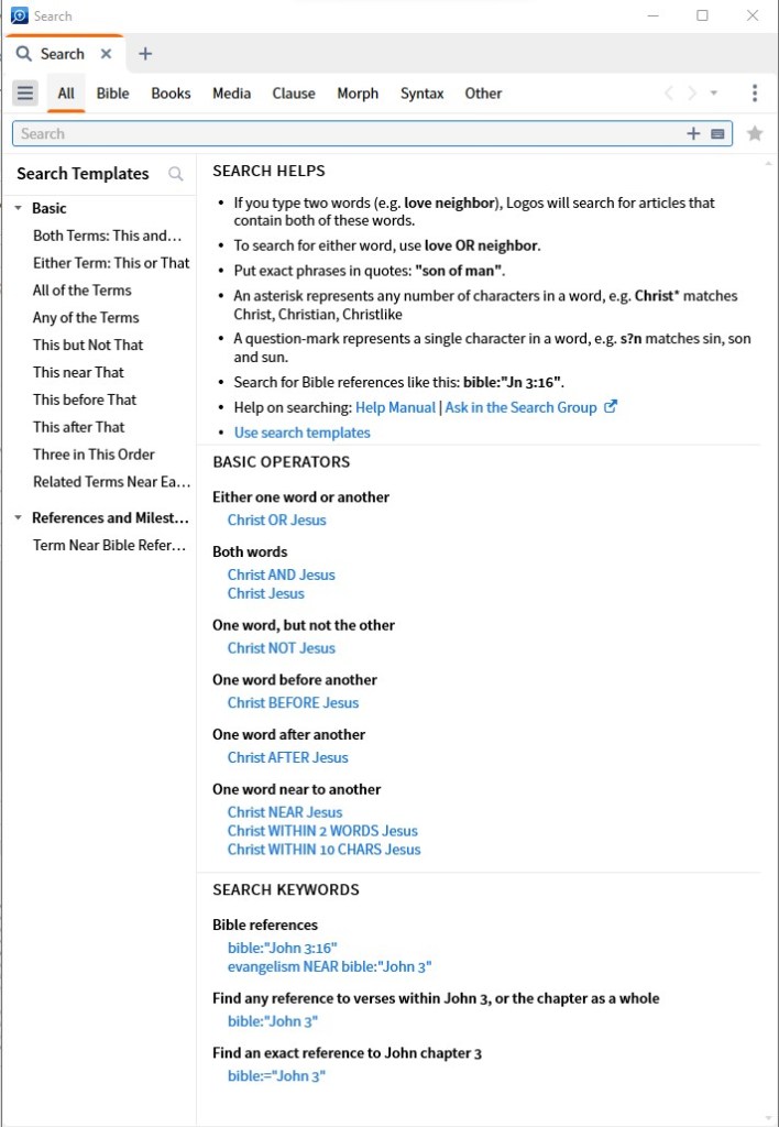 Certainly the greatest upgrade of an existing feature is the Search capability. In Logos 9, users needed to remember clunky bracket commands. In Logos 10, not only is the search feature more intuitive, but there are clear and very helpful examples that pop up below the search bar (see image).